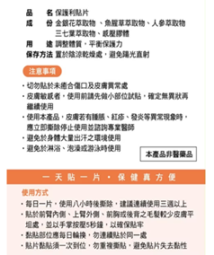 每日一片,使用八小時後撕除,建議連續使用三週以上